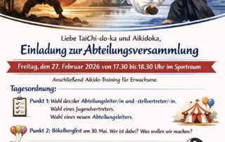 Liebe TaiChi-do-ka und Aikidoka, herzlich lade ich Euch zur Abteilungsversammlung am Freitag, den 27. Februar 2026 von 17.30 bis 18.30 [...]