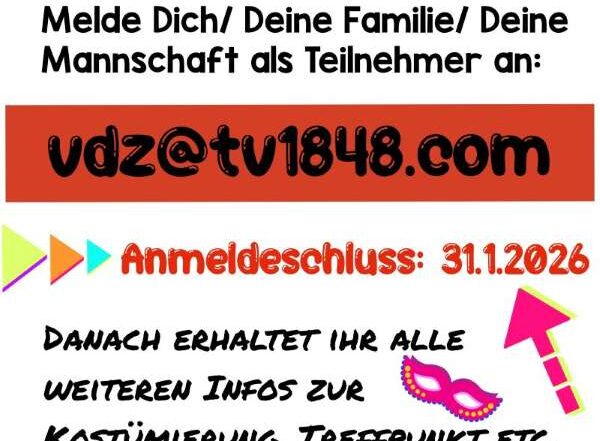 Wir laufen beim Veilchendienstagszug als Fußgruppe mit und du kannst dabei sein! Melde dich, deine Familie oder deine Mannschaft an: vdz@tv1848.com Anmeldeschluss: 31.01.2026 Der Verein übernimmt die Teilnehmergebühren und sorgt für Wurfmaterial Weitere Infos zu [...]