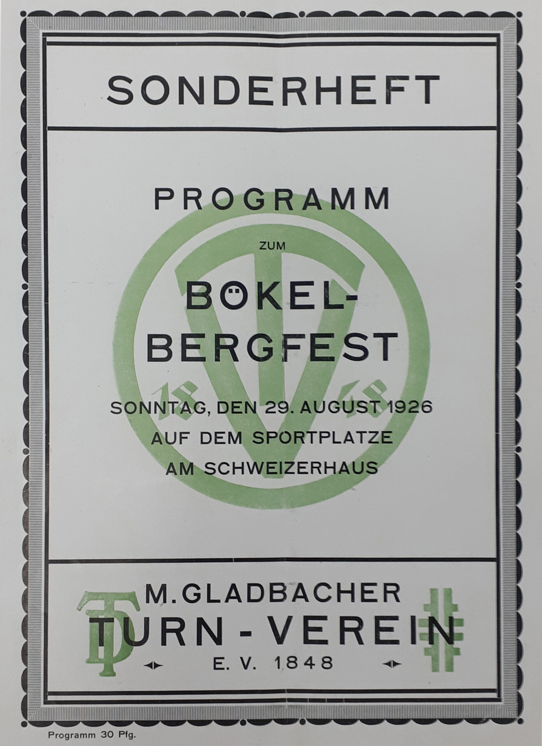 Auch der Gladbacher Turnverein beabsichtigte, eine solche Veranstaltung auf seiner Platzanlage zu verwirklichen. Am 6. September fand schließlich unter dem Namen „Bökelberg-Fest“ * dieses Sportfest das erste Mal statt. Es meldeten sich in kurzer Zeit über 240 Teilnehmer an.